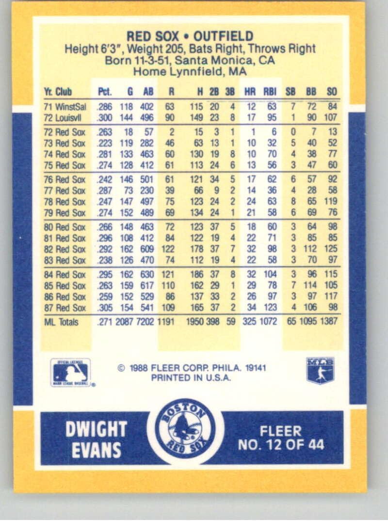 1988 Fleer Baseball MVP’s #12 Dwight Evans Boston Red Sox Official Baseball Card in Raw (EX or Better) Condition