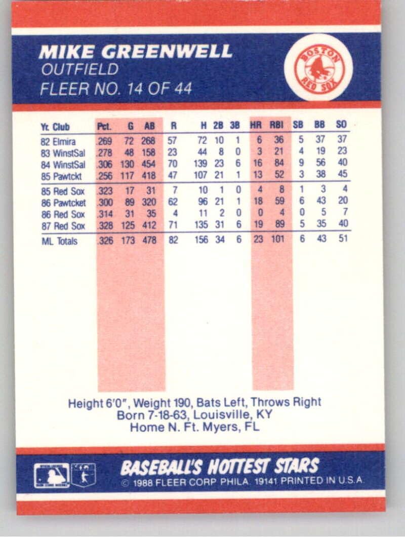 1988 Fleer Hottest Stars #14 Mike Greenwell Boston Red Sox Official Baseball Card in Raw (EX or Better) Condition