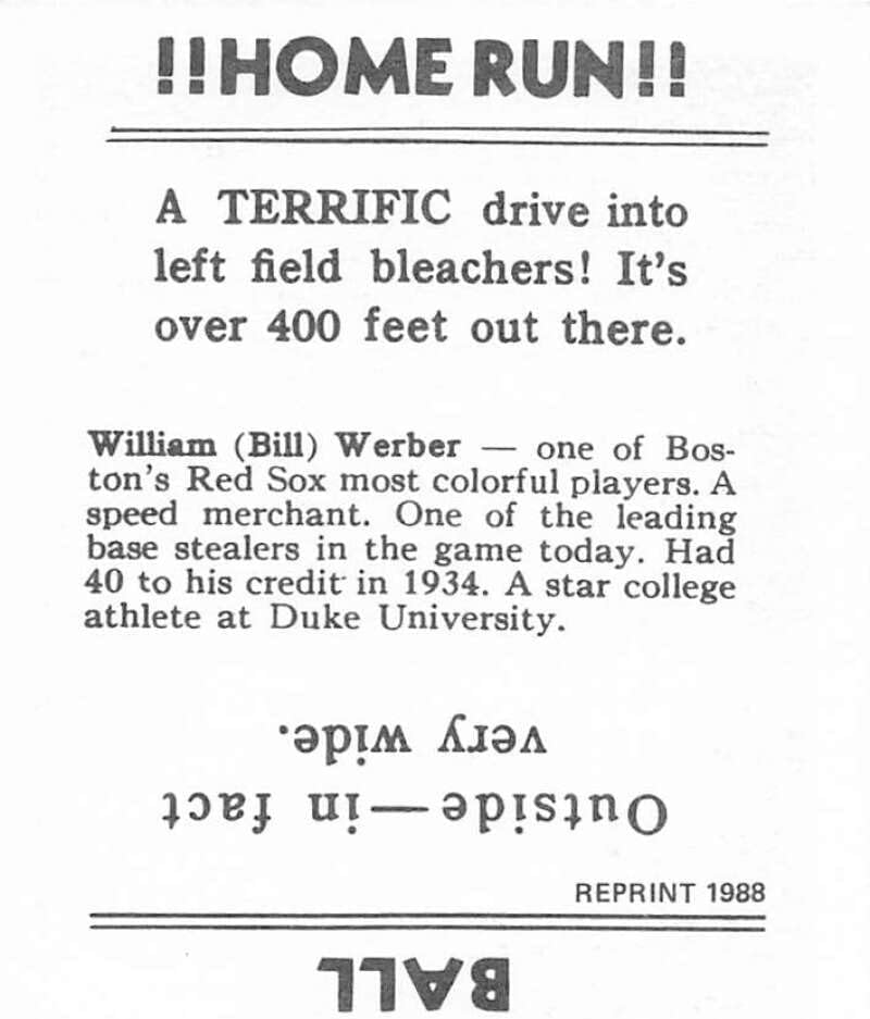 1988 Galasso 1936 Goudey Reprint #25 Billy Werber Boston Red Sox Small Sized Reprint Card in Raw (NM or Better) Condition