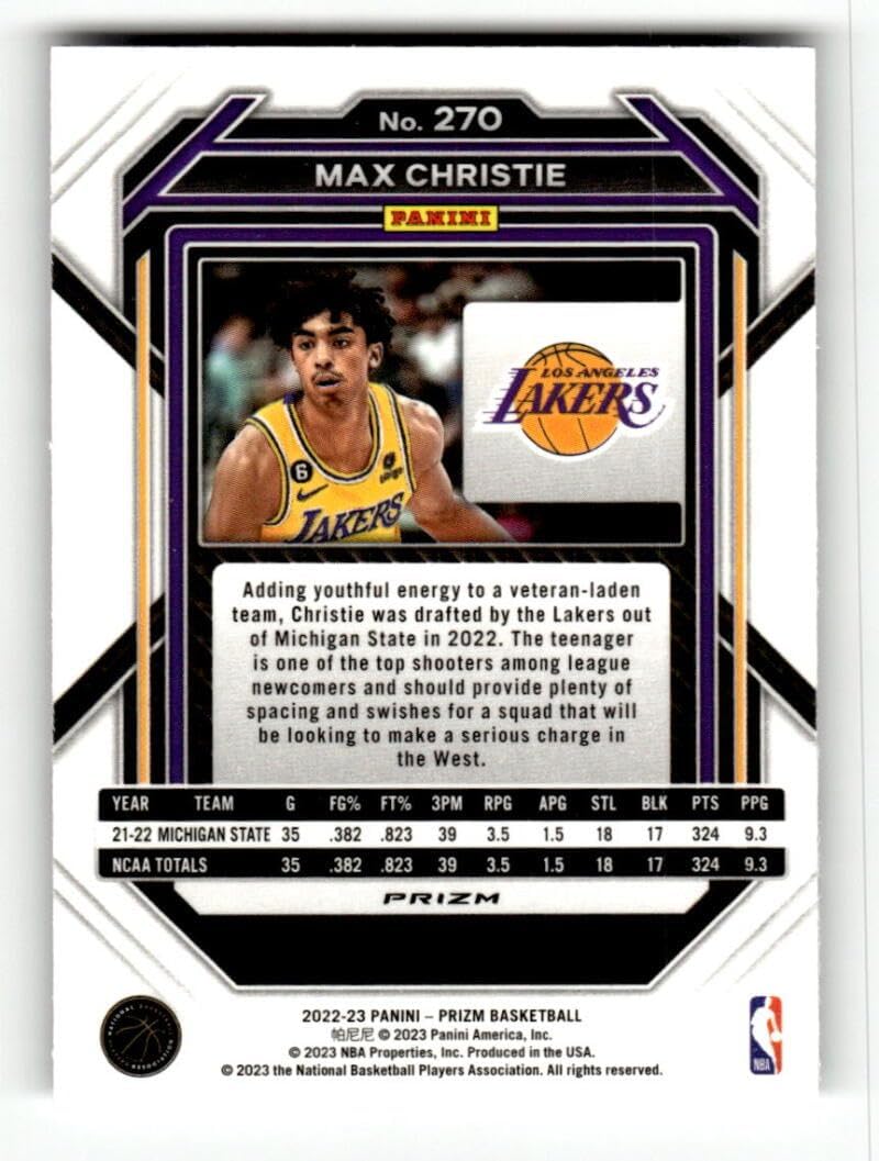 2022-23 Panini Prizm Prizms Fast Break #270 Max Christie Los Angeles Lakers RC Rookie NBA Basketball Trading Card