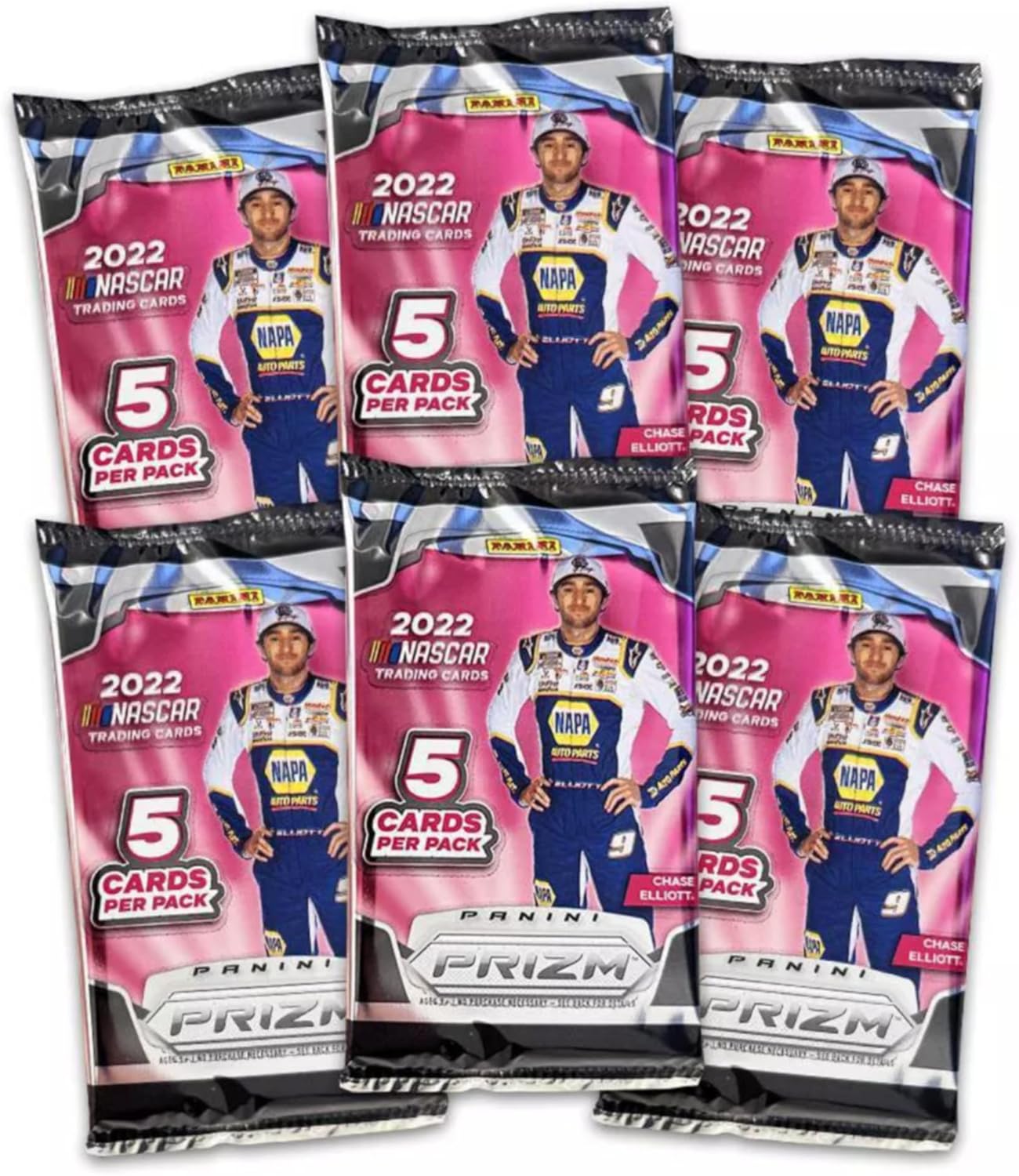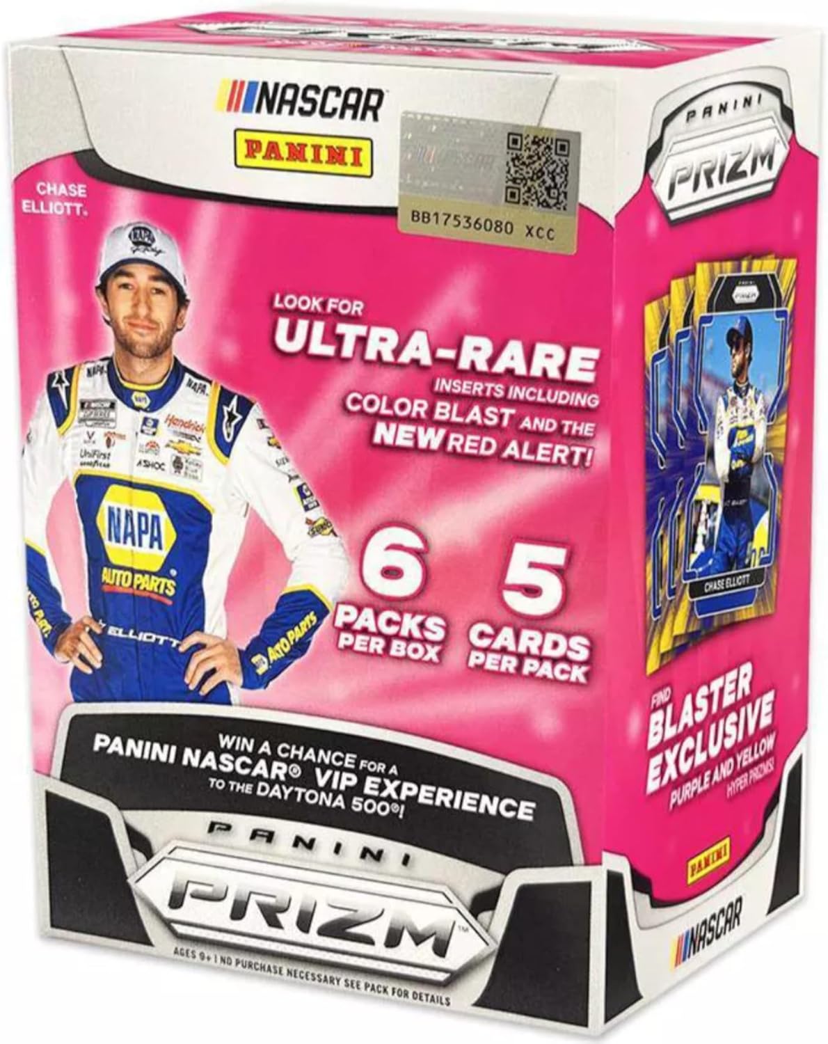 Panini presents the 2022 NASCAR Prizm blaster box! Each box includes 6 packs with 5 cards per pack. Be on the look out for Ultra-Rare inserts including Color Blast and the NEW Red Alert! Also look for blaster exclusive Purple and Yellow Hyper Prizms!