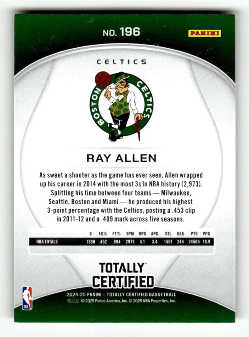 2024-25 Panini Totally Certified #196 Ray Allen Legend Boston Celtics NBA Basketball Base Trading Card