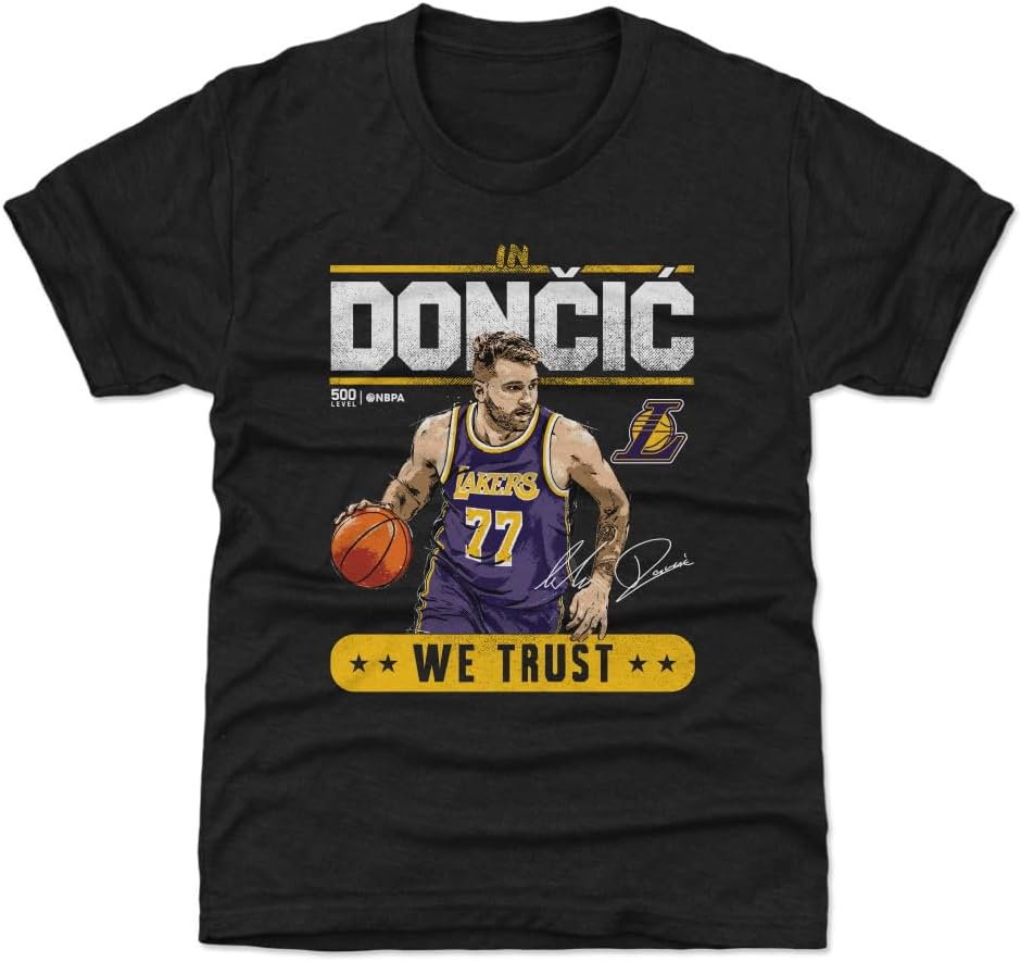 Add a burst of fun to your child’s shirt collection with our Los Angeles Lakers Luka Doncic Unisex Kids T-Shirt. Its extreme softness ensures your child stays comfortable throughout the day, while the fun and bold Luka Doncic design will delight both kids and parents alike. This Los Angeles Lakers youth shirt is a great addition to any back to school outfit and will thrill your young Basketball fan.