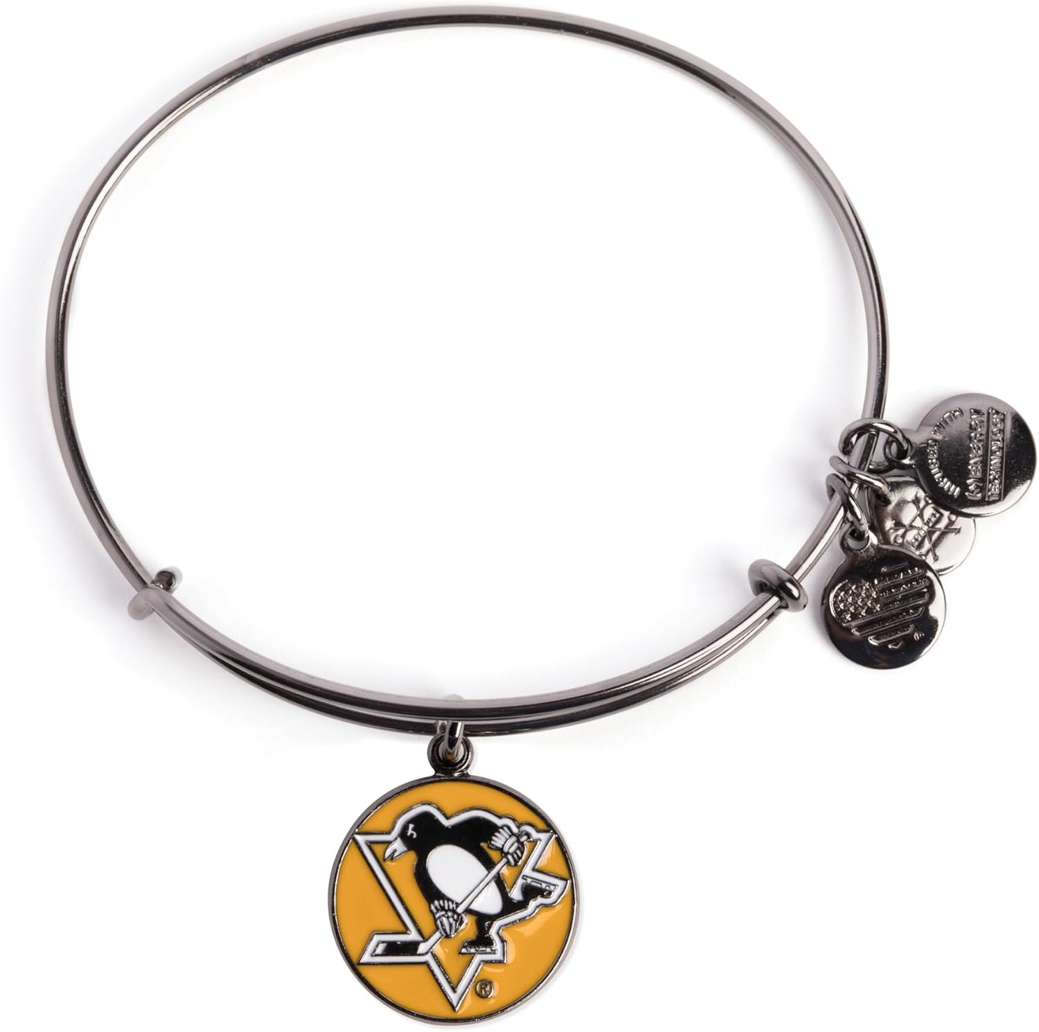 Alex and Ani Color Infusion Charm, Pittsburgh Penguins II Expandable Wire Bangle Bracelet, Midnight Silver Finish, Yellow Charm, 2 inches to 3.5 inches