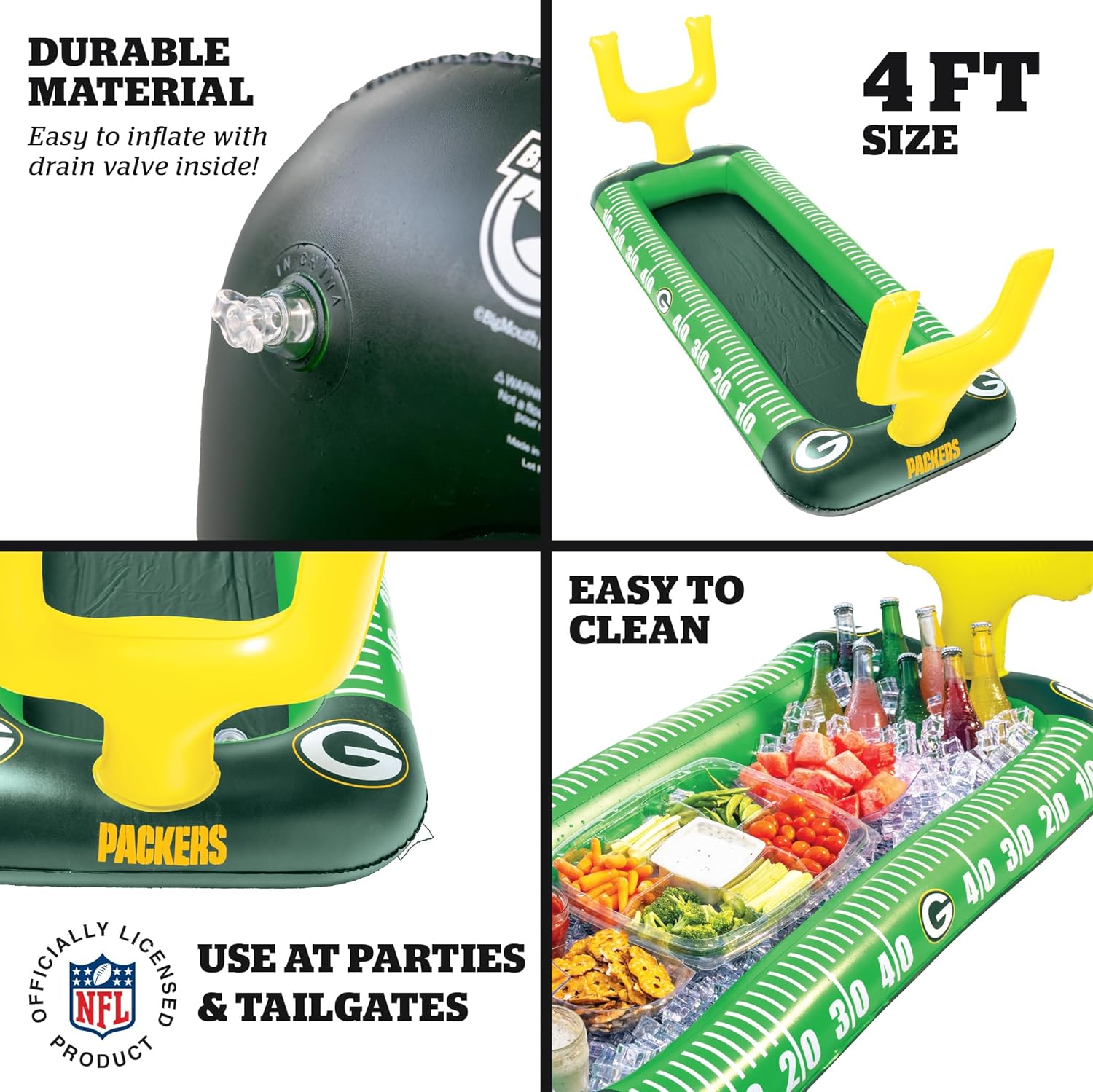 SERVE GAME-DAY SNACKS WITH GREEN BAY PACKERS PRIDE: Show off your team spirit with this 4ft inflatable buffet featuring Green Bay Packers team logos and colors—a must-have for any Packers fan.