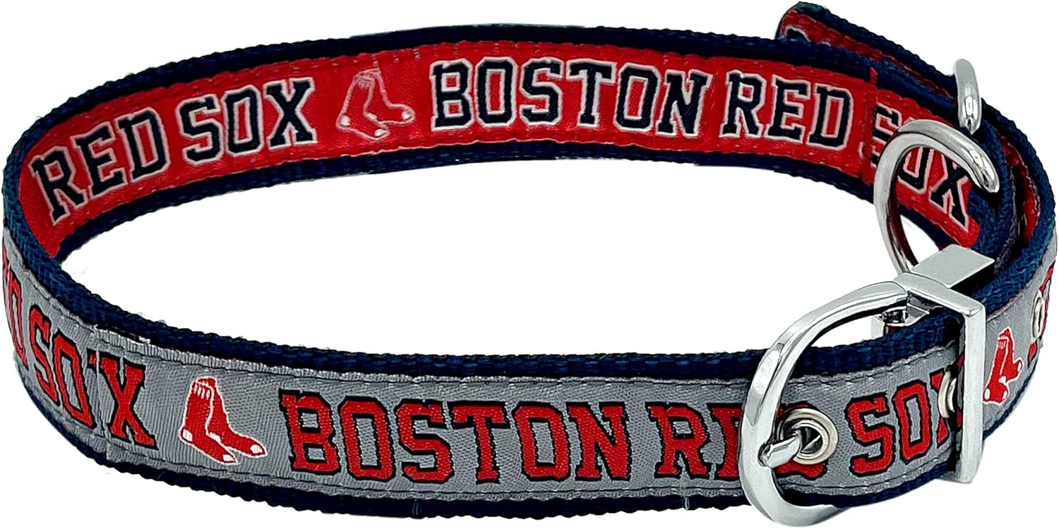 PREMIUM DOG COLLARS MLB Officially licensed. The new PETS FIRST REVERSIBLE DOG COLLARS with a SWIVEL METAL BUCKLE has 2 different TEAM LOGO designs & bright colors of your favorite MLB TEAM! Your dog can wear the Collar on whichever side you prefer!
