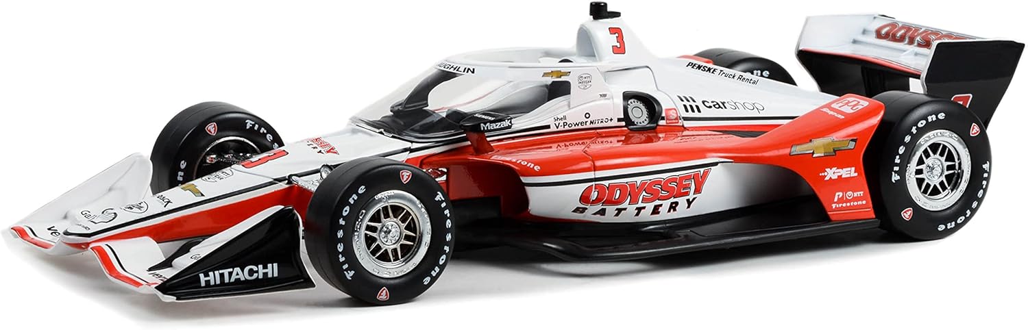 Brand new 1/18 scale diecast car model of Dallara IndyCar #3 Scott McLaughlin “Odyssey Battery” Team Penske (Road Course Configuration) “NTT IndyCar Series” (2022) die cast model car by Greenlight 11174