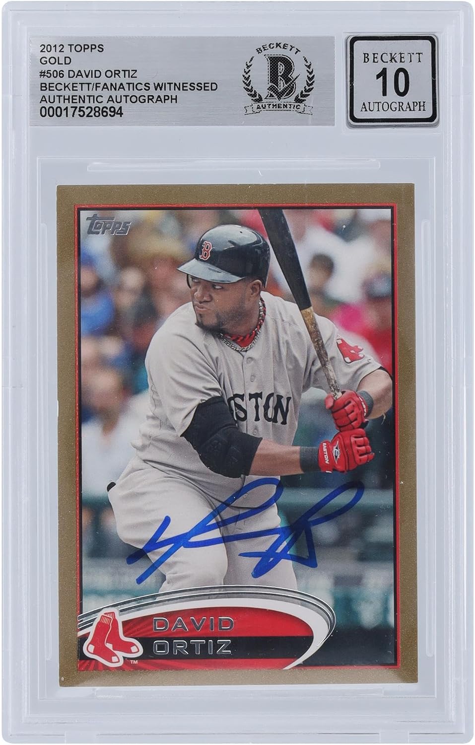 David Ortiz Boston Red Sox Autographed 2012 Topps Gold #506 #/2012 Beckett Fanatics Witnessed Authenticated 10 Card . If a product is unsigned or non game-used, a hologram will not be included. David Ortiz memorabilia. Boston Red Sox memorabilia.