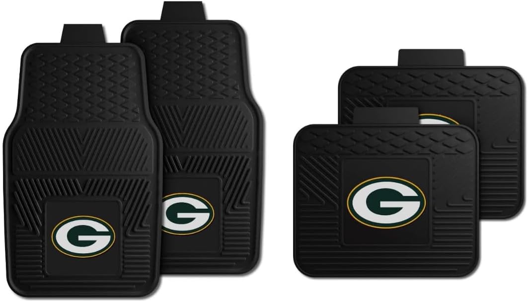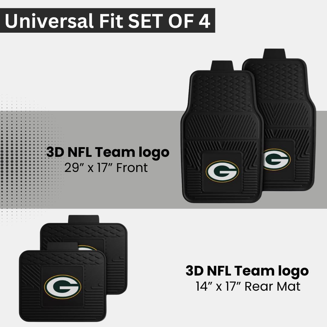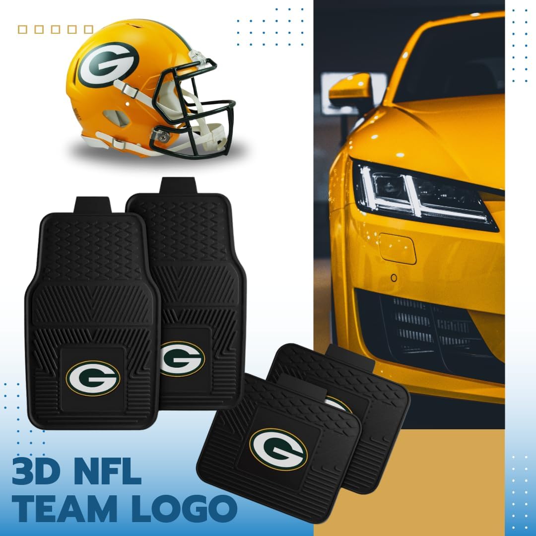 Fanmats Green Bay Packers Set of 4 Car Mats for Cars, SUV, Pickups – All Weather Technology Protection, Deep Reservoir design, Universal Fit – 3D NFL Team logo – 29” x 17” Front – 14” x 17” Rear Mat