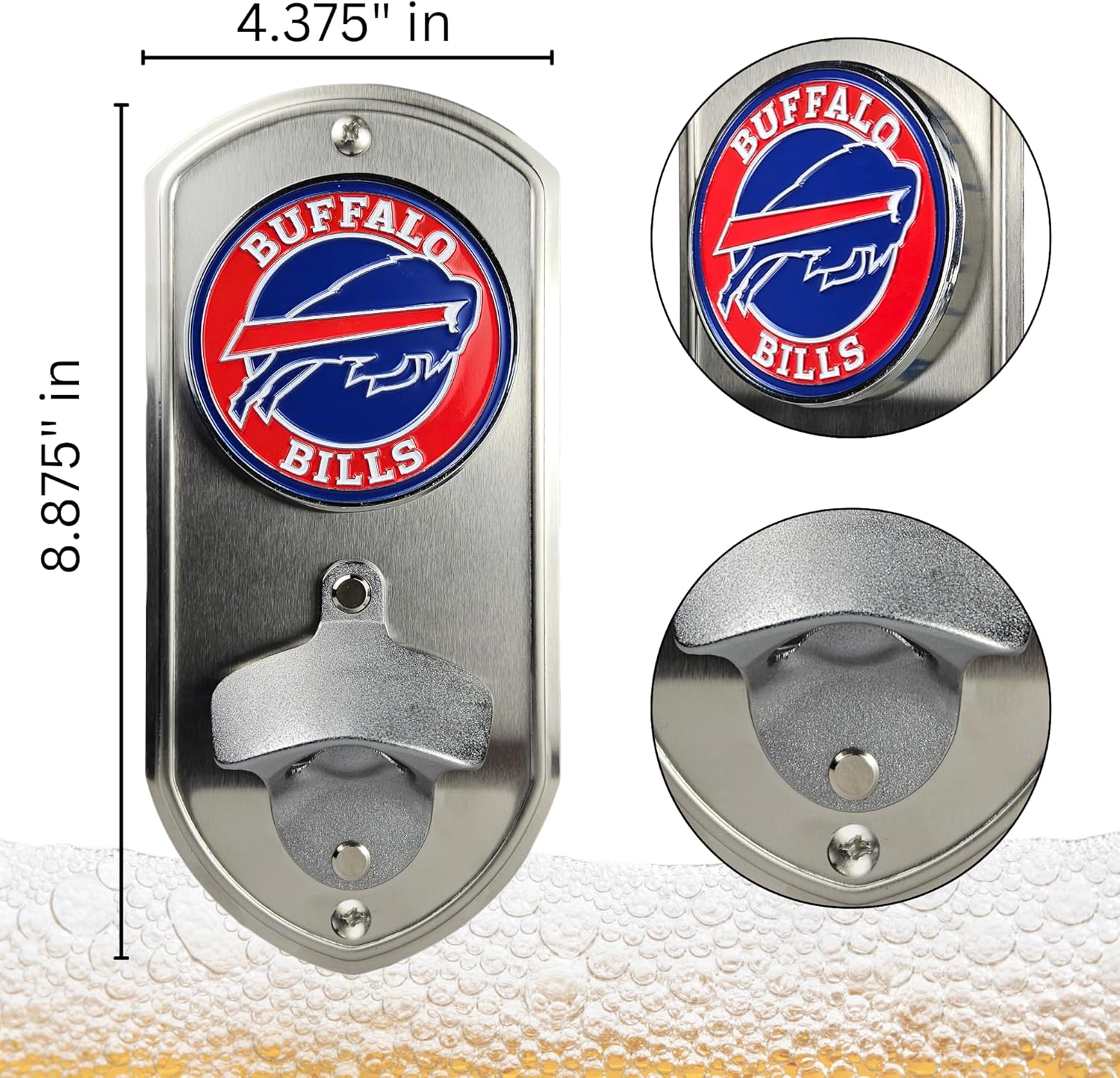 FLEX YOUR FANDOM ON GAMEDAY: Serve up some team spirit at kickoff with this epic wall-mounted drink opener. Emblazoned with the bold & iconic Buffalo Bills logo in stunning 3D, remind the whole squad who you root for in this house with every pour.