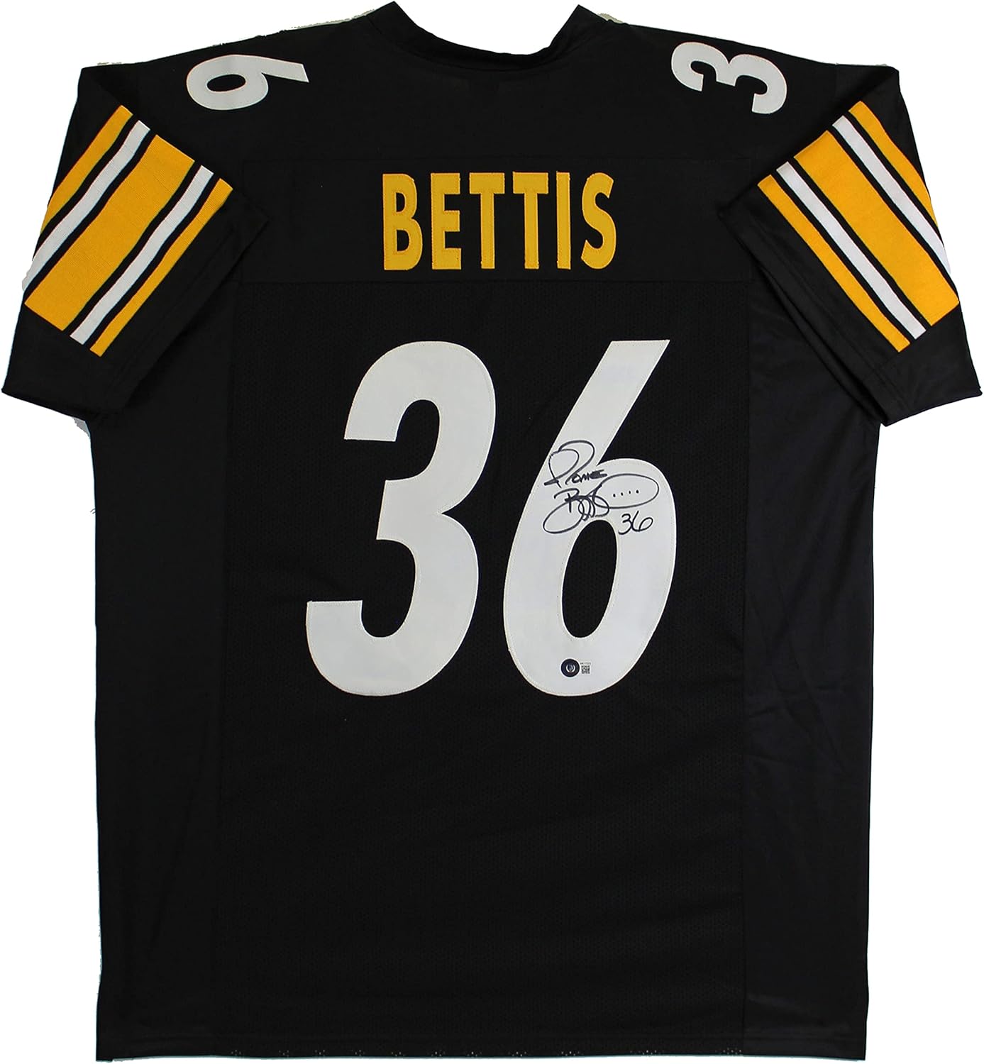 This Autographed Black Jersey has been Personally Signed by Jerome Bettis of the Pittsburgh Steelers. This item is 100% Authentic to include a hologram by Beckett Authentication Services. This item will come with the new Beckett Authentication hologram that has a scannable QR code rather than the traditional COA. If you would like to have a COA, you are welcome to reach out to Beckett for a printed certification once you receive your item. This is a BAS Witnessed Protection Program item which means a Beckett Authentication Service representative was present when this item was being signed. This is a stock item. We conducted an autograph signing with Jerome Bettis and we have several of these available. The one you will receive will be of equal quality to the one pictured. This item can be verified through BAS. This is a X-Large sized, non-branded, custom-stitched Jersey. Press Pass Collectibles only offers Authentic Autographs by Jerome Bettis through Signings, In-Person Signings or Private Collections to include a 100% money back Lifetime Authenticity Guarantee.