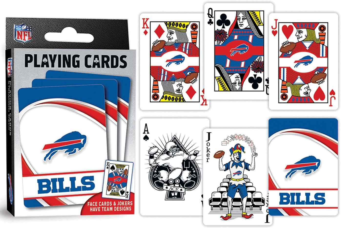 CUSTOM FOOTBALL DESIGNS: Back of each card features your favorite team’s logo; face cards and jokers are uniquely illustrated to show off your team spirit