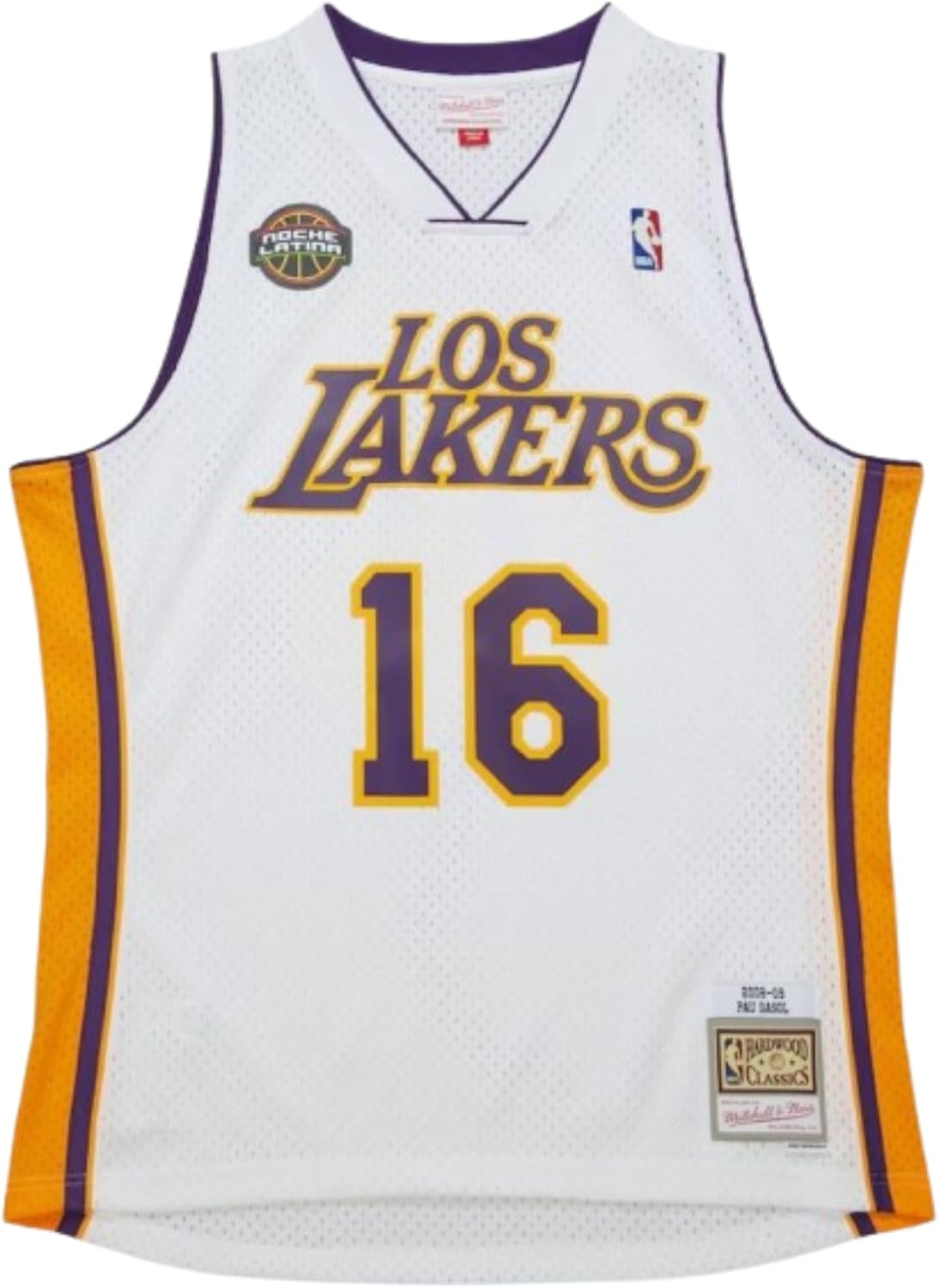 Mitchell & Ness NBA Los Angeles Lakers PAU Gasol #16 2008-09 Noche Latina HWC Swingman Jersey – White