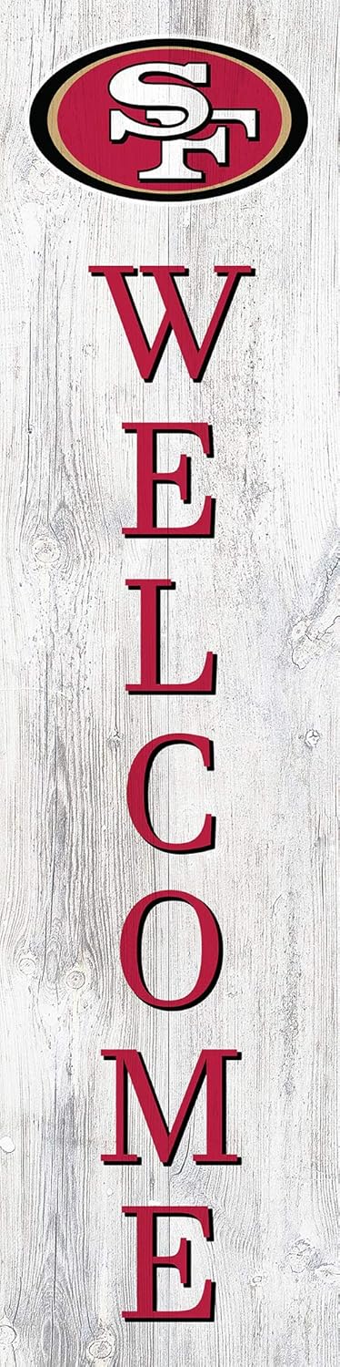 San Francisco 49Ers Rustic welcome sign with team logo against white “barnwood look.” Decorative team sign. Great for any room.Show team pride. American made sign.
