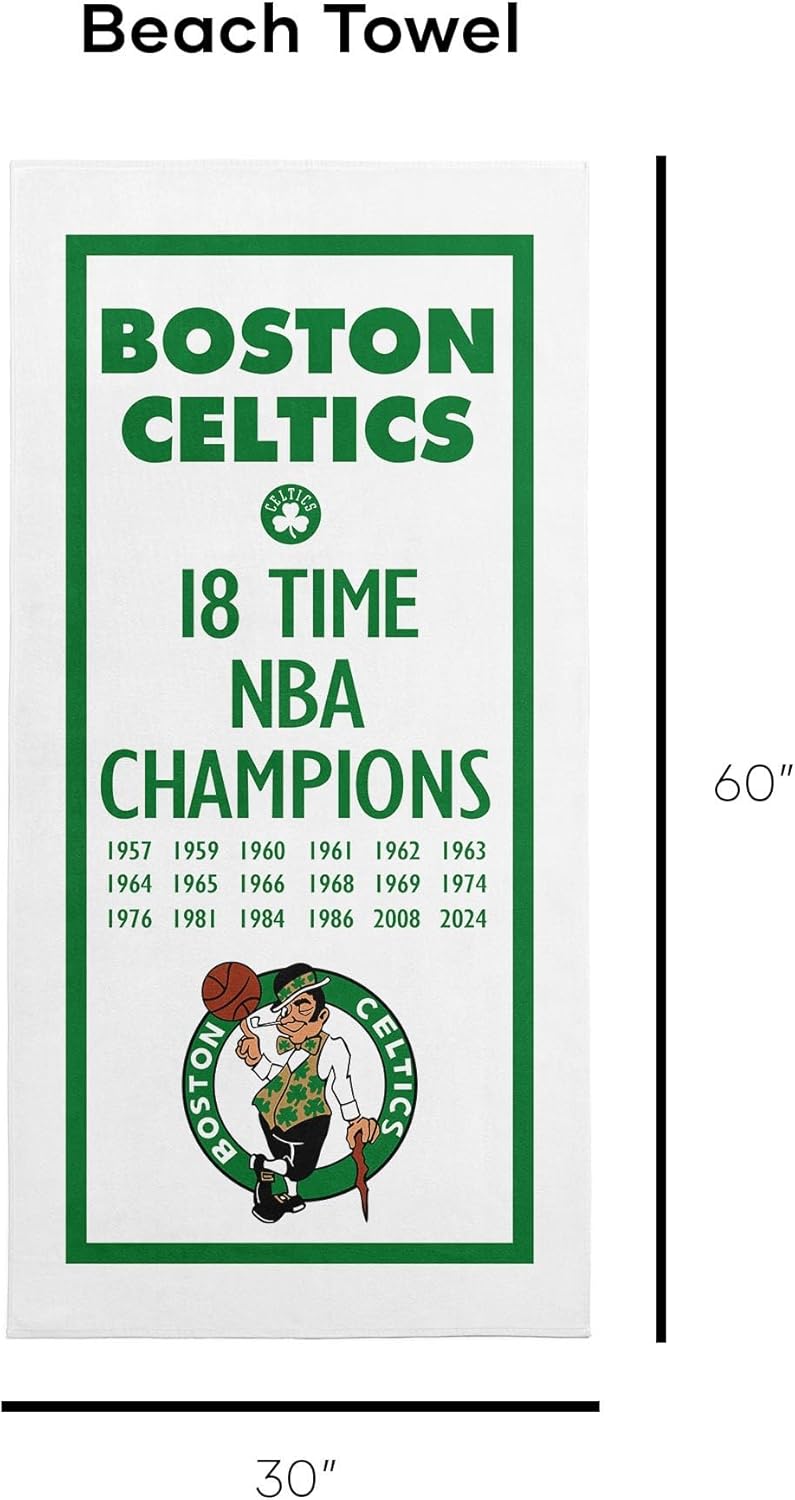 Northwest NBA Boston Celtics NBA Champions 2024 Beach Towel, 30″ x 60″, Lucky
