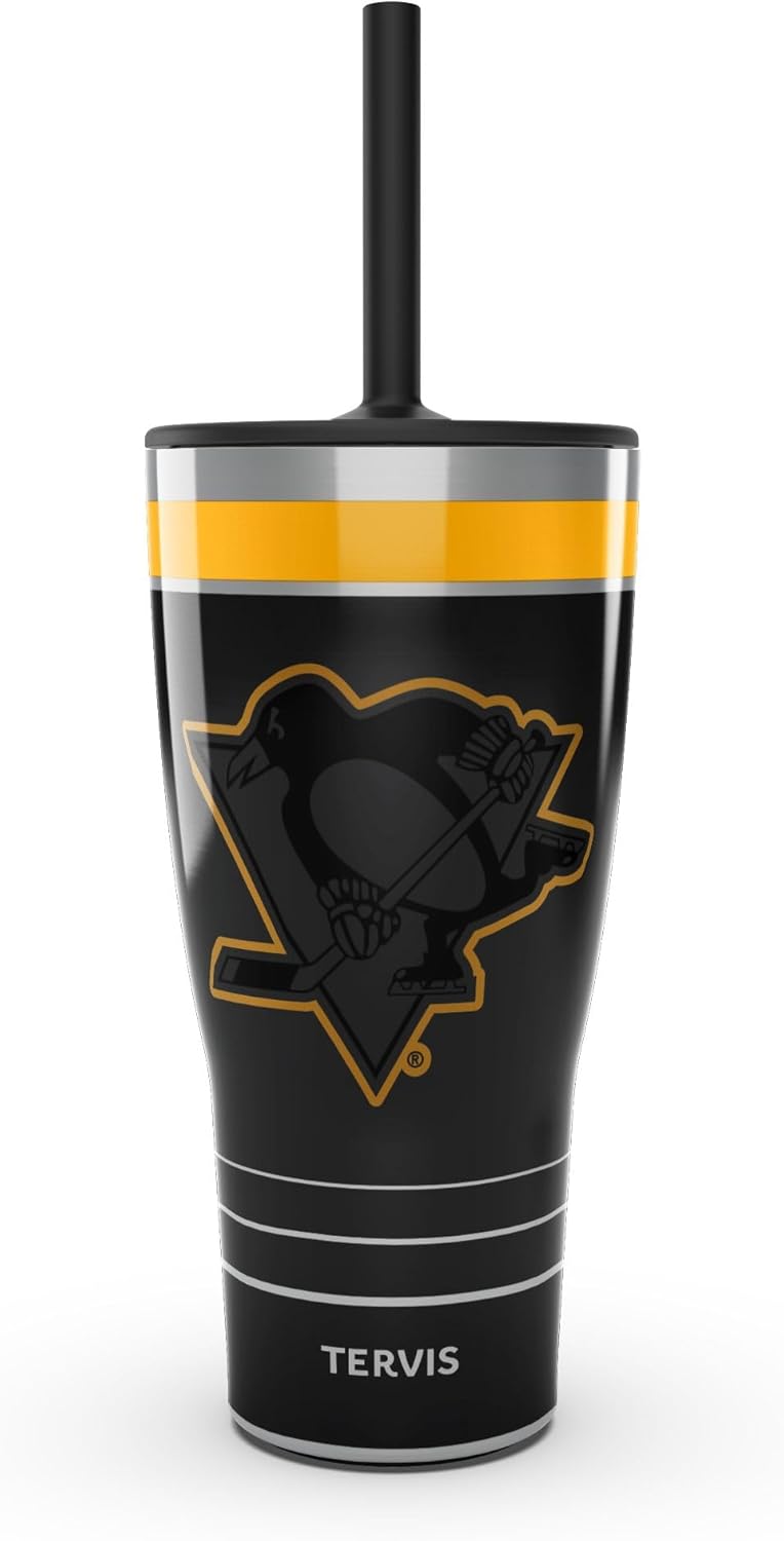 Tervis Traveler NHL Pittsburgh Penguins – Night Game Triple Walled Insulated Tumbler Travel Cup Keeps Drinks Cold & Hot, 30oz with Straw Lid, Stainless Steel
