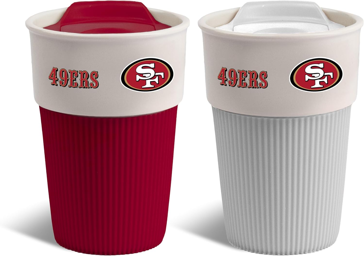 The Memory Company | Licensed NFL 2-Pack 10oz Ceramic Travel Mugs with Silicone Wrap,San Francisco 49ers