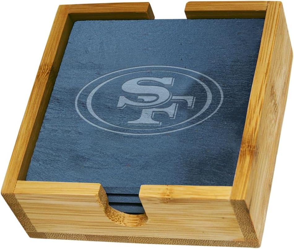 The Memory Company | Licensed NFL 4-Pack Team Logo Slate Coaster Set with Wooden Holder,San Francisco 49ers